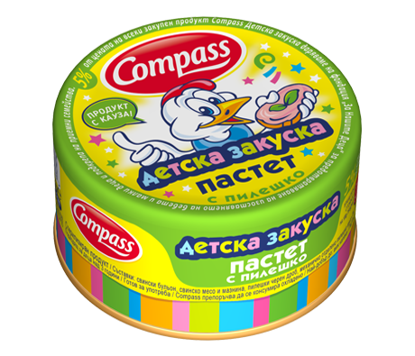 Идеален за лека закуска на енергичните малчугани, пастетът Compass Детска закуска е вкусна комбинация от свинско и птиче месо, пилешки черен дроб и внимателно подбрани подправки.