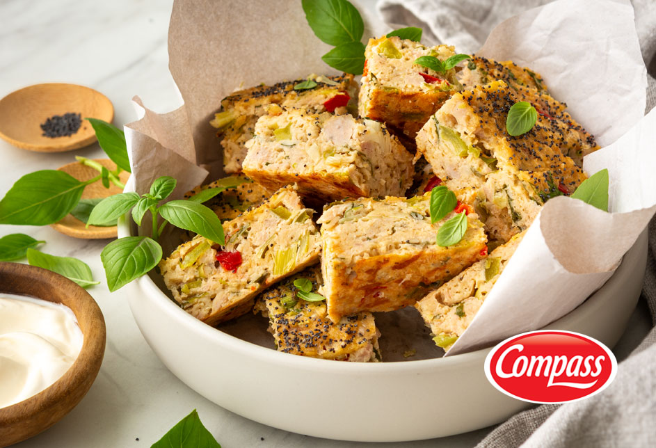 1. В голяма купа разбийте леко яйцата с киселото мляко. Добавете настърганата моцарела и нарязаните на ситно чушки, праза и подправки. Разбъркайте добре и добавете овесените ядки.